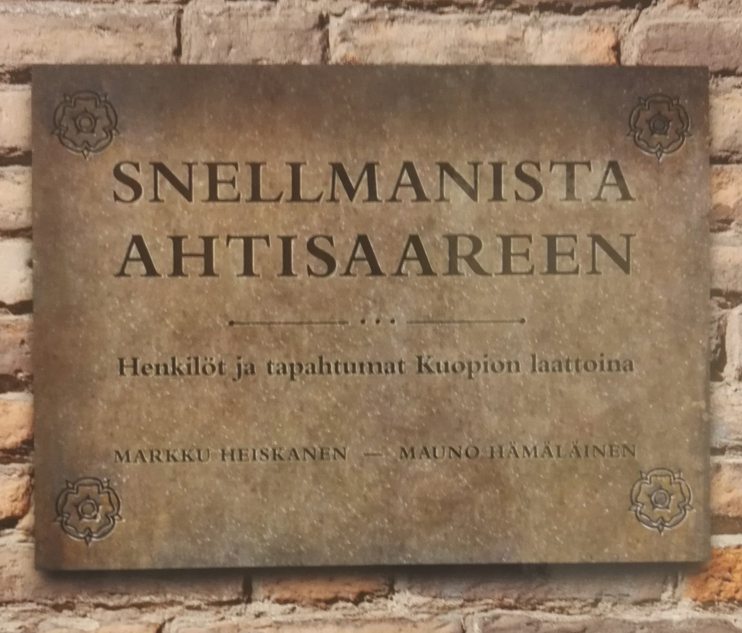Heiskanen, Markku, Hämäläinen, Mauno: Snellmanista Ahtisaareen. Henkilöt ja tapahtumat Kuopion laattoina. Omakustanne. Snellman-instituutti B-sarja 55/2013. Kuopio 2013. 116 s.
