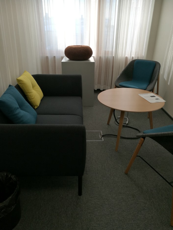 Kiitos, 1999 Kiitos, v. 1999, huovutettu villa ja kirjontalanka Sisäministeriö, Kirkkokatu 12, Helsinki